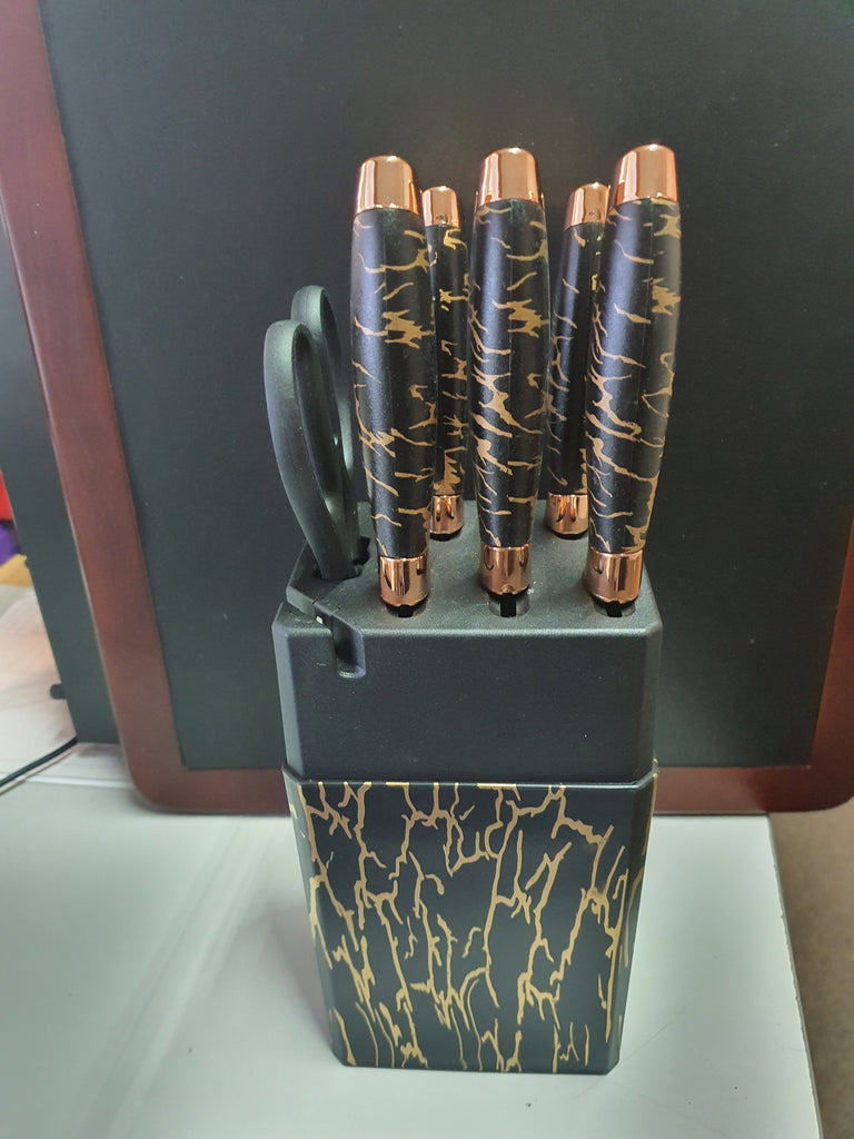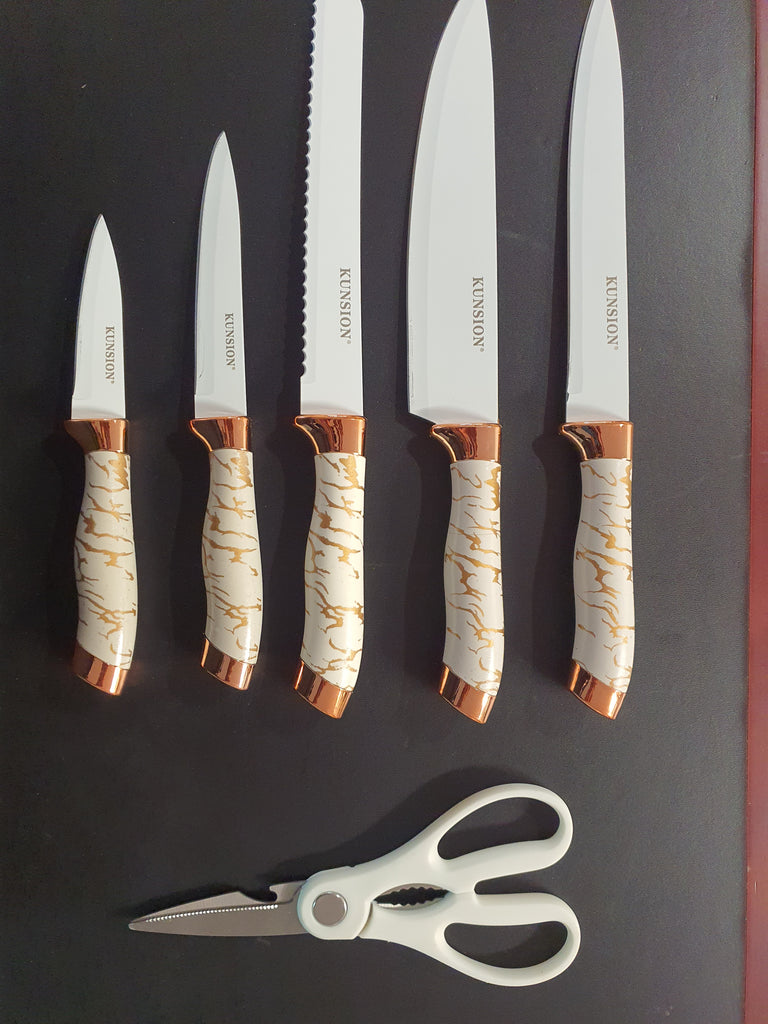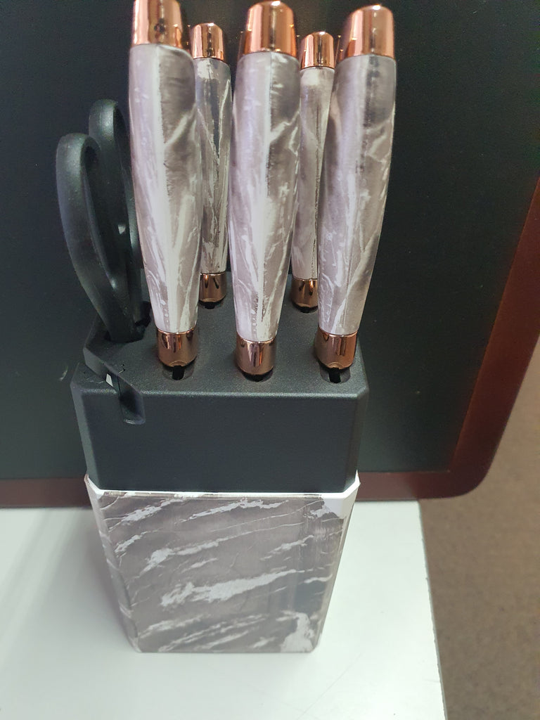 6Pce Knife Set in Block Colours Black Grey White